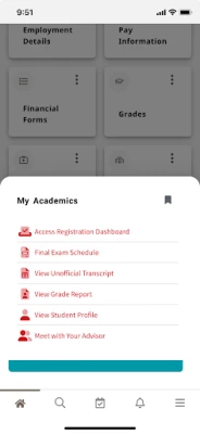 • Courses — Manage your courses on the go by accessing your course schedule and links to helpful resources