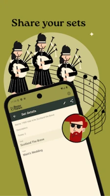 Braw Tunes helps you organize tunes into sets, track your progress, and share with others. It comes with a library of 7,000+ bagpipe tunes, with full scores for all public domain tunes.