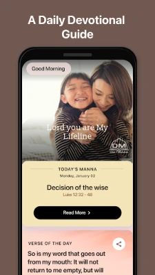 Daily Manna is a daily devotional that helps God's people refresh, refocus and renew their faith through Bible reading, reflection, and prayer. Users can read the bible even on offline no internet required and they can listen to the daily manna devotional as a audio and stay connected with God. Users can know about the religious and devotional events.