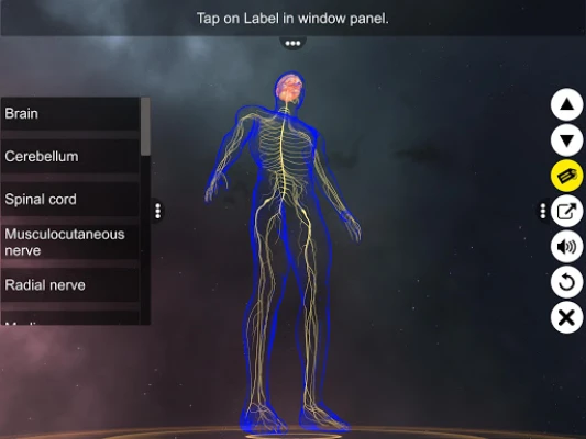 Let us explore the offerings of the ‘Human Nervous system’ app. The user gets to interact with the 3D model of the nervous system. The user can explore the 3D models through the ‘rotate’, ‘zoom in’ and ‘zoom out’ options. The 3D models in the ‘Human Nervous system’ app come with the desirable feature of ‘labels’. The labeling part is very important from the perspective of understanding the anatomy of the human nervous system. Tapping the labels on the window which displays the name of the part gives the user the understanding of the name and structure and function of the respective part.