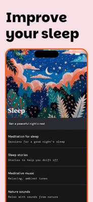 • Sleep stories & sounds – rain, ocean, white noise and narrated tales that turn screens‑off into lights‑out.