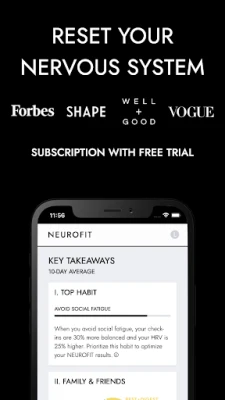 NEUROFIT™ is the world’s first Nervous System Trainer, helping you regulate, balance, and optimize your mind and body with daily check-ins, biometric measurements, tailored somatic exercises, and personalized insights. If you’ve explored health apps like Calm, Headspace, Breathwrk, Rootd, BetterHelp or TalkSpace for mental health, therapy, or anxiety relief, discover a new high-performance path to calm, deep sleep, and relaxation with NEUROFIT.