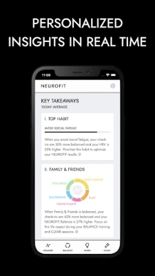 NEUROFIT integrates high-performance coaching, somatic exercises, breathwork, mindfulness, and meditation techniques to help you address stress, anger management, and burnout in key life areas such as Love & Partnership, Money & Finance, Career & Business, Mission & Purpose, Environment, and Health & Wellness. Through daily meditation check-ins and data‑driven tracking - including Heart Rate Variability (HRV), resting heart rate, and NEUROFIT Balance™ Score - you can measure your progress without extra wearables. If you’re seeking better sleep or a new tool to complement your existing therapy or wellness app routine, NEUROFIT’s unique focus on the nervous system goes far deeper than surface-level self help.